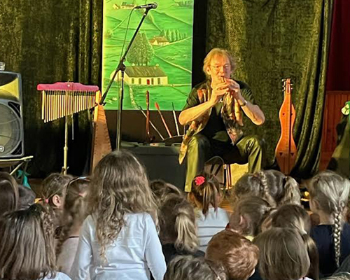 Un voyage musical au fil duquel il écoute et découvre des instruments connus, mais d'autres aussi, étranges et méconnus : flûte irlandaise, cromorne, bombarde, veuze nantaise, psaltérion, dulcimer, bodhràn...